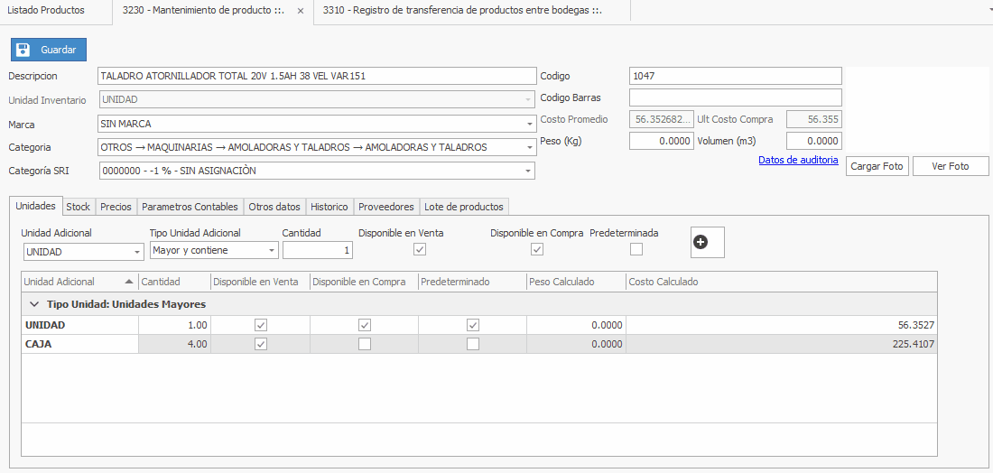 - Unidad: Puede visualizar la unidad que va a transferir el producto.